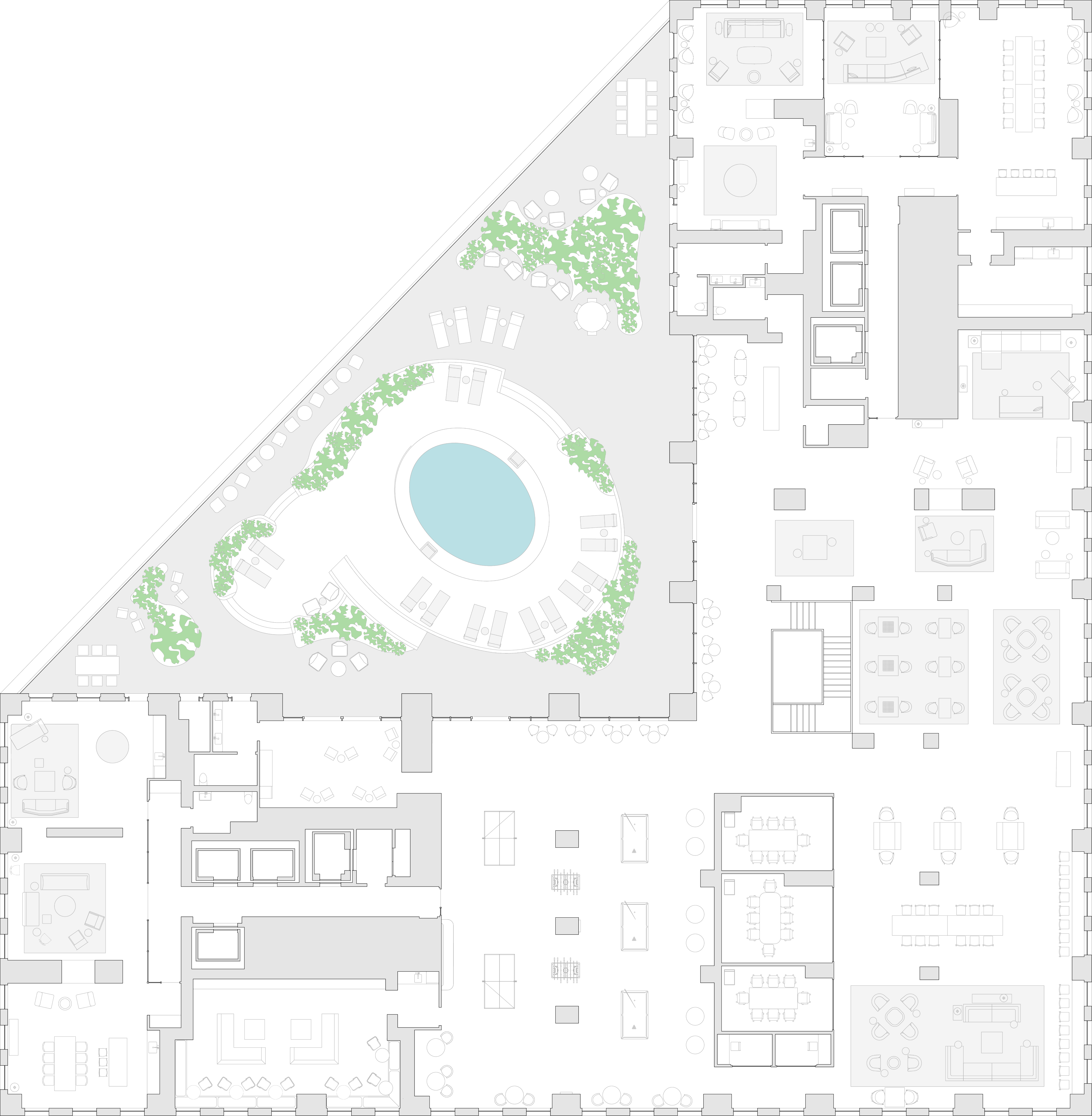 A collection of vibrant indoor and outdoor spaces offers places to relax, entertain, work, and swim. From lush green outdoor retreats and an open-air solarium to dedicated work areas and social spaces, every corner is designed for connection and comfort.
